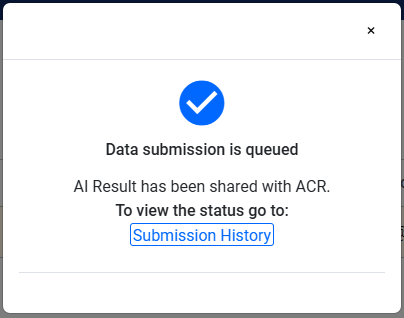 - Once submitted a modal will appear to notify that data submission is queued with an option to see its status in submission history