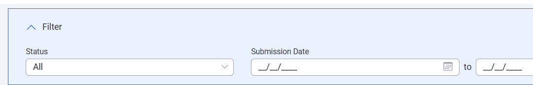 You can use the filter to search for file uploads by status and submission date: